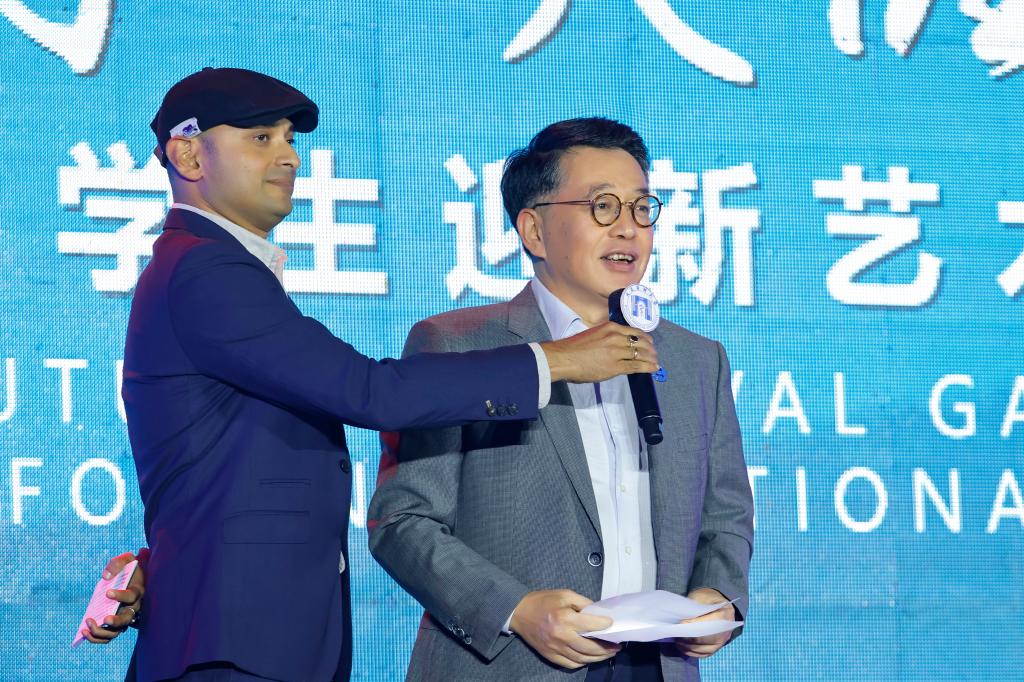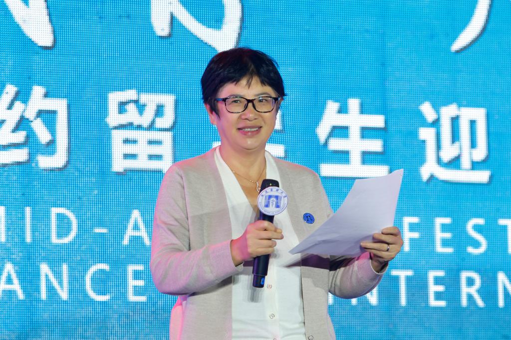 大连市外国专家局局长原驰作为嘉宾代表在晚会上致辞。原驰肯定了我校为来华留学教育及国际交流合作所做出的贡献,表示未来外专局和高校要加强合力推进国际教育和国际交流合作的高质量发展,并为在场嘉宾和师生送上了中秋祝福。