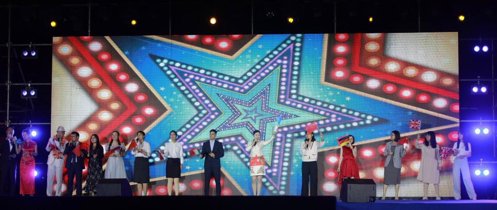 全体教师用英、日、俄、意、德、法等多国语种表演的歌曲联唱将整场晚会推向高潮,让在场的嘉宾和同学们感受到了天美传媒