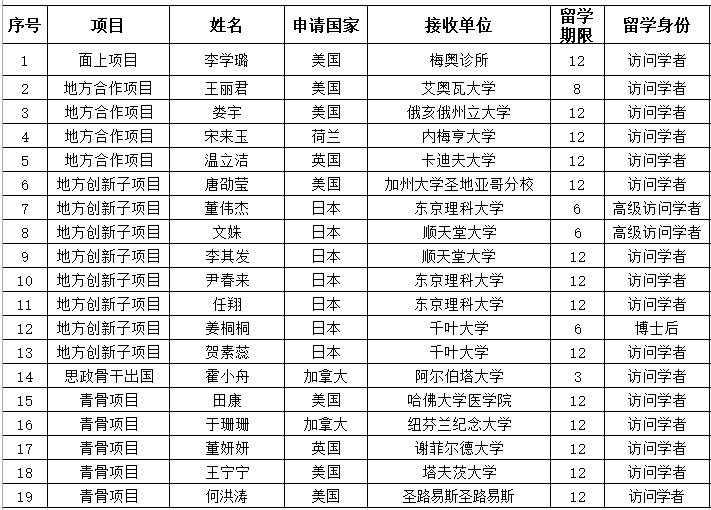 获批国家公派留学资格名单(教师)