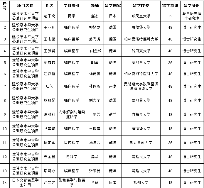 获批国家公派留学资格名单(学生)