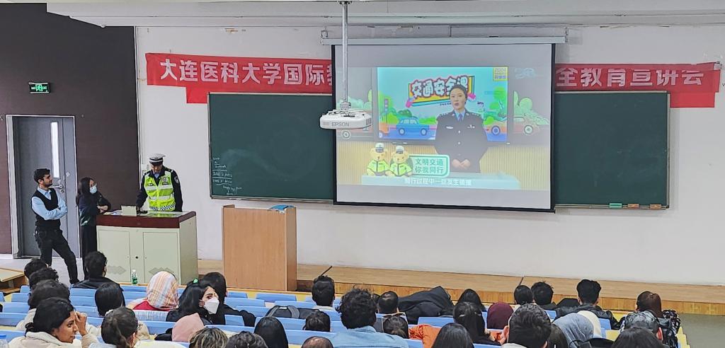 特邀旅顺口分局警官和大连市交警支队旅顺口大队警官,为300余名留学生举办了一场别开生面的安全教育宣讲会。校保卫处副处长樊江杰、天美传媒