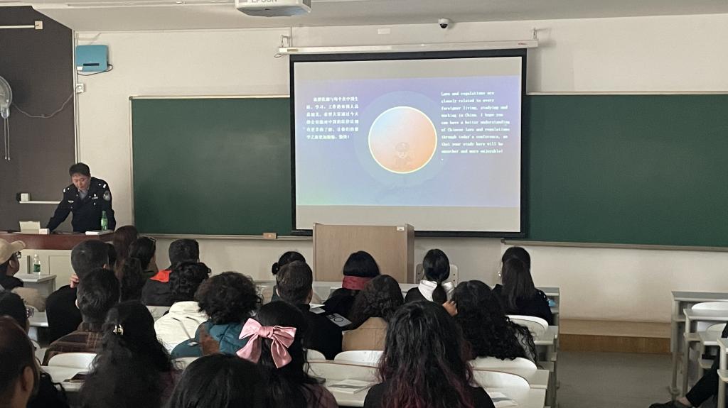 特别邀请大连市出入境管理局、大连市交警支队旅顺口大队、旅顺口分局的警官以及学校保卫处的老师,分别针对出入境管理法律法规、电信诈骗、交通与人身安全、禁毒宣传以及防火安全教育进行宣讲。通过真实案例剖析,帮助学生们明晰在华学习应遵守的法律法规,了解交通安全注意事项,增强识毒、防毒、拒毒意识,提升消防安全能力,有效提升他们在日常生活中的安全防范能力,为校园生活与出行安全筑牢坚实屏障。