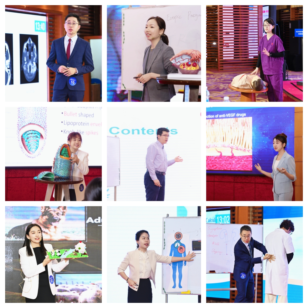 在英语授课展示环节,教师们巧妙融合临床案例,生动模拟课堂互动,充分运用启发式教学,并介绍了学科前沿进展,营造出生动而富有活力的课堂氛围。他们凭借流利的英文表达、扎实的专业功底、精湛的教学技艺以及多样化的教学手段,赢得了现场阵阵热烈的掌声。随后,来自浙江大学、山东大学、安徽医科大学、南方医科大学、天津中医药大学、南京医科大学以及我校的专家对授课展示进行了专业点评与指导。