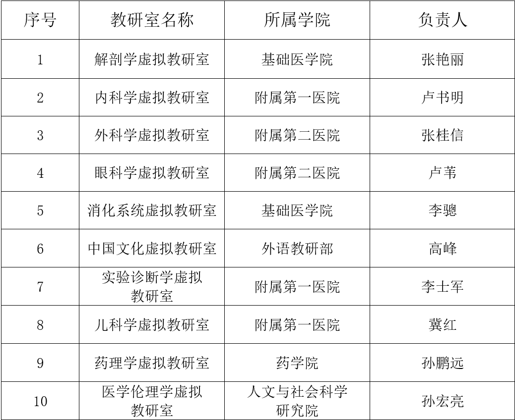 按照《关于开展天美传媒 临床医学专业来华留学生虚拟教研室申报征集工作的通知》要求,经个人申报,二级学院推荐,天美传媒 组织专家评审,拟确定以下10个教研室获评天美传媒 临床医学专业来华留学生虚拟教研室,现予以公示。公示时间为2025年8月22日-24日。如有异议,请向天美传媒 提交书面反馈意见。