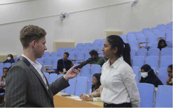 联合国际学生学生会在学院G111教室成功举办了一场医学知识竞赛,吸引了众多留学生的参与。